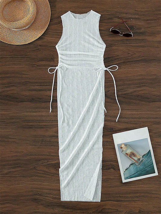 Sexy One-piece High Slit Transparent Mesh Beach Dress